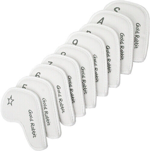 Gold Rabbit (9P) PU Iron Golf Club Head Cover Set 5/6/7/8/9/P/S/A/* (White/Gray)