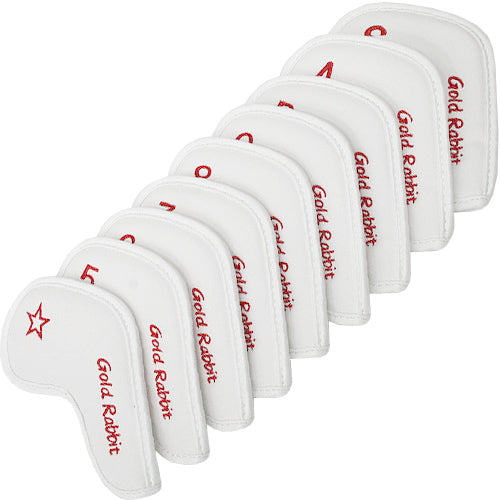 Gold Rabbit (9P) PU Iron Golf Club Head Cover Set 5/6/7/8/9/P/S/A/* (White/Red)