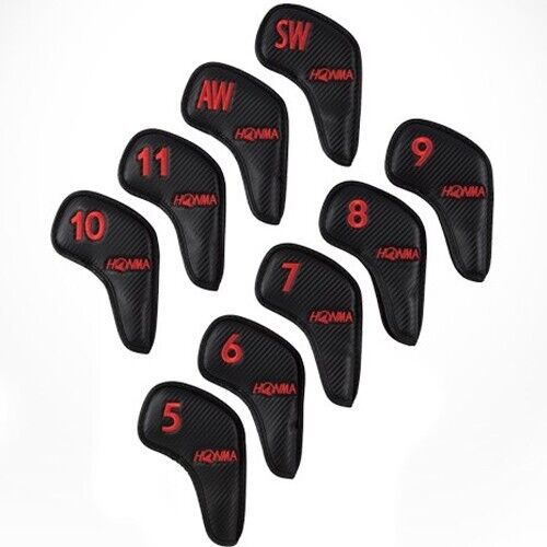 Honma 9 Pcs Iron Head Cover Set #5-11/AW/SW Golf Club Headcover (Carbon Black)